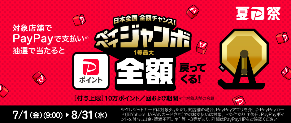 期間中はPaypayでの支払いがお得です。